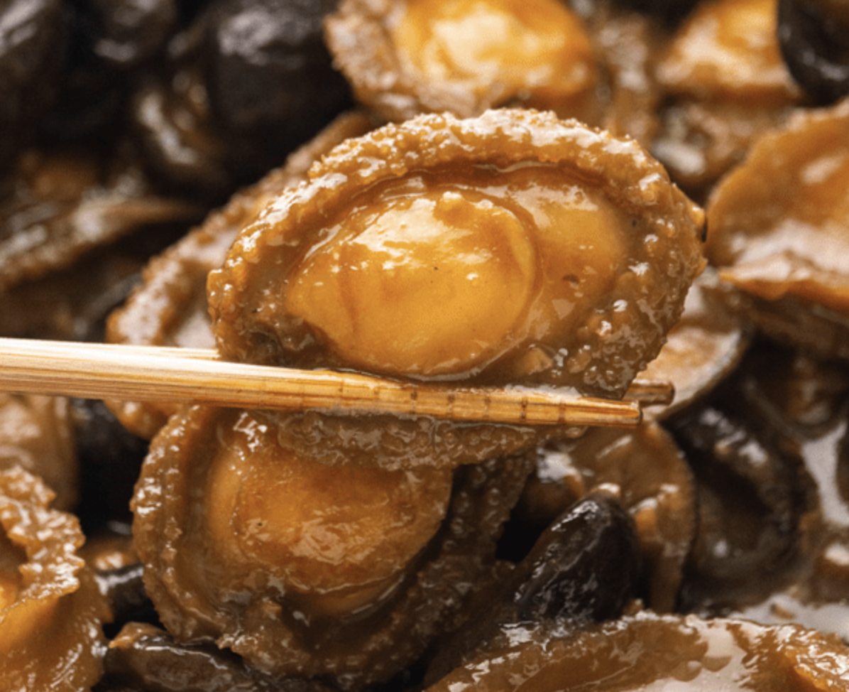 Abalone simmered with shiitake mushrooms, oyster sauce, and ginger in a rich broth.