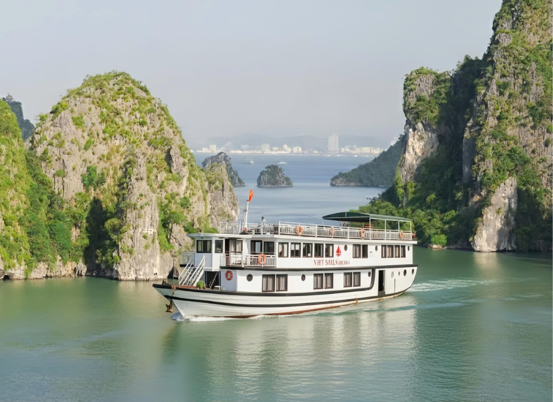 Viet Sails Cruise is a cozy 4-star wooden cruise operating in Halong Bay. Designed in a traditional wooden style, the cruise offers a warm atmosphere and comfortable facilities for a relaxing onboard experience. Viet Sails Cruise sails on the Bai Tu Long Bay route, a quieter area known for its peaceful scenery and fewer crowds, ideal for travelers seeking a calm and uncrowded journey.